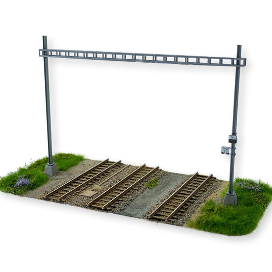 Our overhead line program "N-Track Modellbau FineScale". This very fine-grained overhead line contains more details than our standard program and ensures a realistic result on your diorama or your layout. Due to its fineness, however, this overhead line is not suitable for driving. Please note that the parts from this program are not compatible with the Sommerfeldt overhead line!